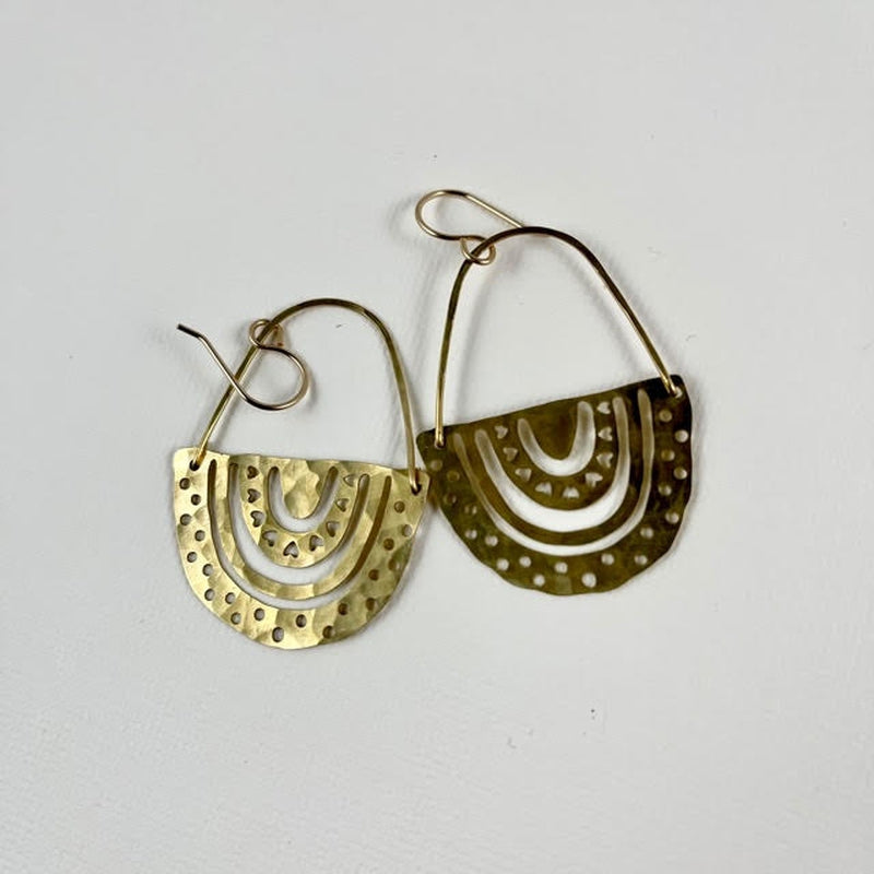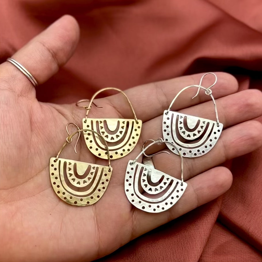 A brass or silver pendant hangs from 14 karat gold filled or sterling silver ear wire. We are proud to announce these earrings as apart of our For Purpose Collection!