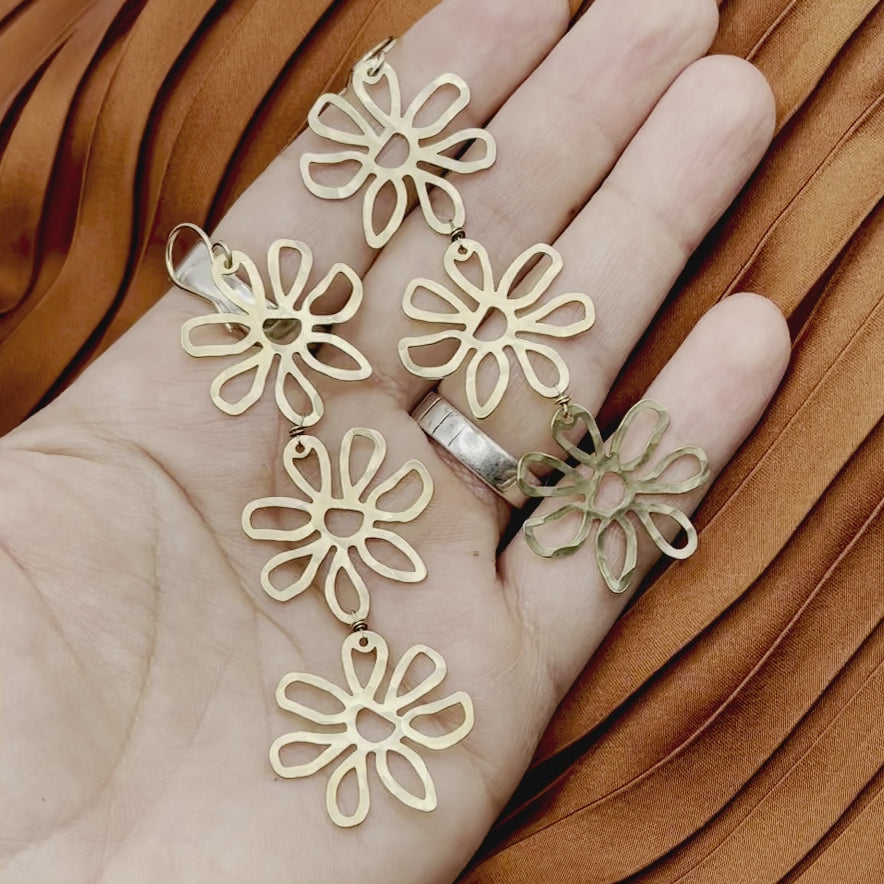 Gold or silver floral pendants that dangle from handmade 14 karat gold filled or sterling silver ear wire. Matching necklace available!