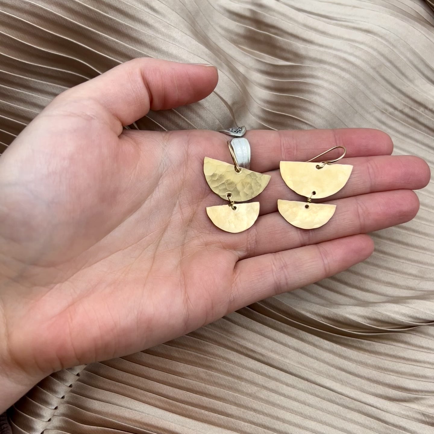 Ear wires and necklace chains are hypoallergenic and are sterling silver or 14 karat gold filled. Gold and silver pendant pieces are made of raw brass or sterling silver plated brass and can be polished the same as all other precious metals.