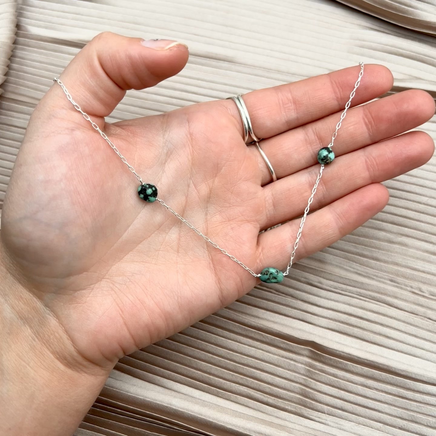 Set of three Turquoise beads on 14k gold filled or sterling silver chain.