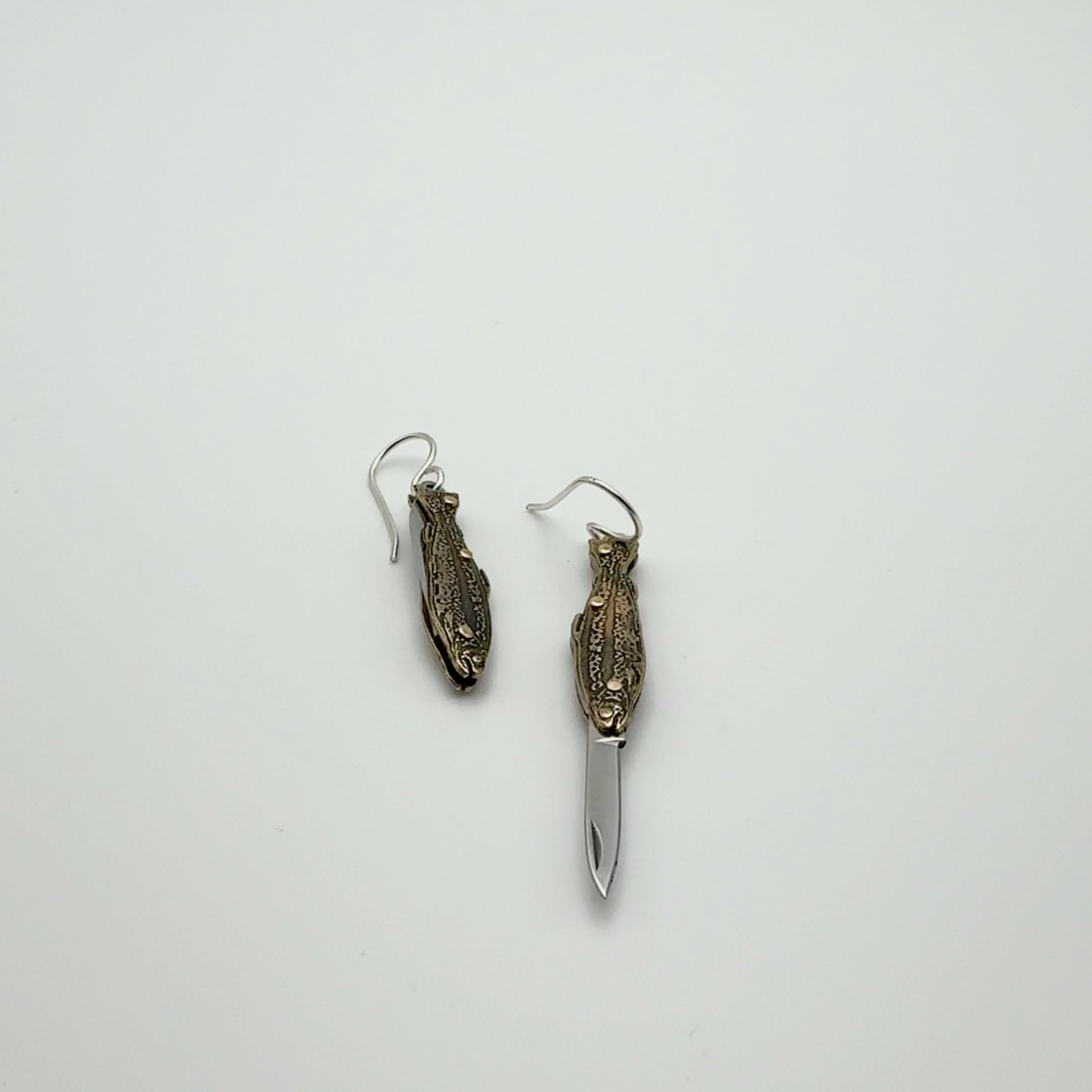 These Trout Utility Pendant Earrings were made exclusively for Fluff Hardware—you won’t find these little swimmers anywhere else! Each pair is available in three unique styles: simple, turquoise chip beads, or red jasper heishi beads and a circle charm. Perfect for adding a touch of nature!