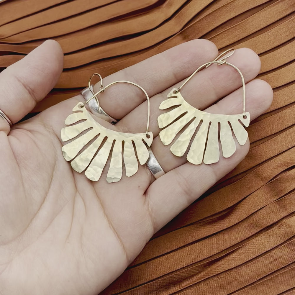 Ear wires and necklace chains are hypoallergenic and are sterling silver or 14 karat gold filled. Gold and silver pendant pieces are made of raw brass or sterling silver plated brass and can be polished the same as all other precious metals.