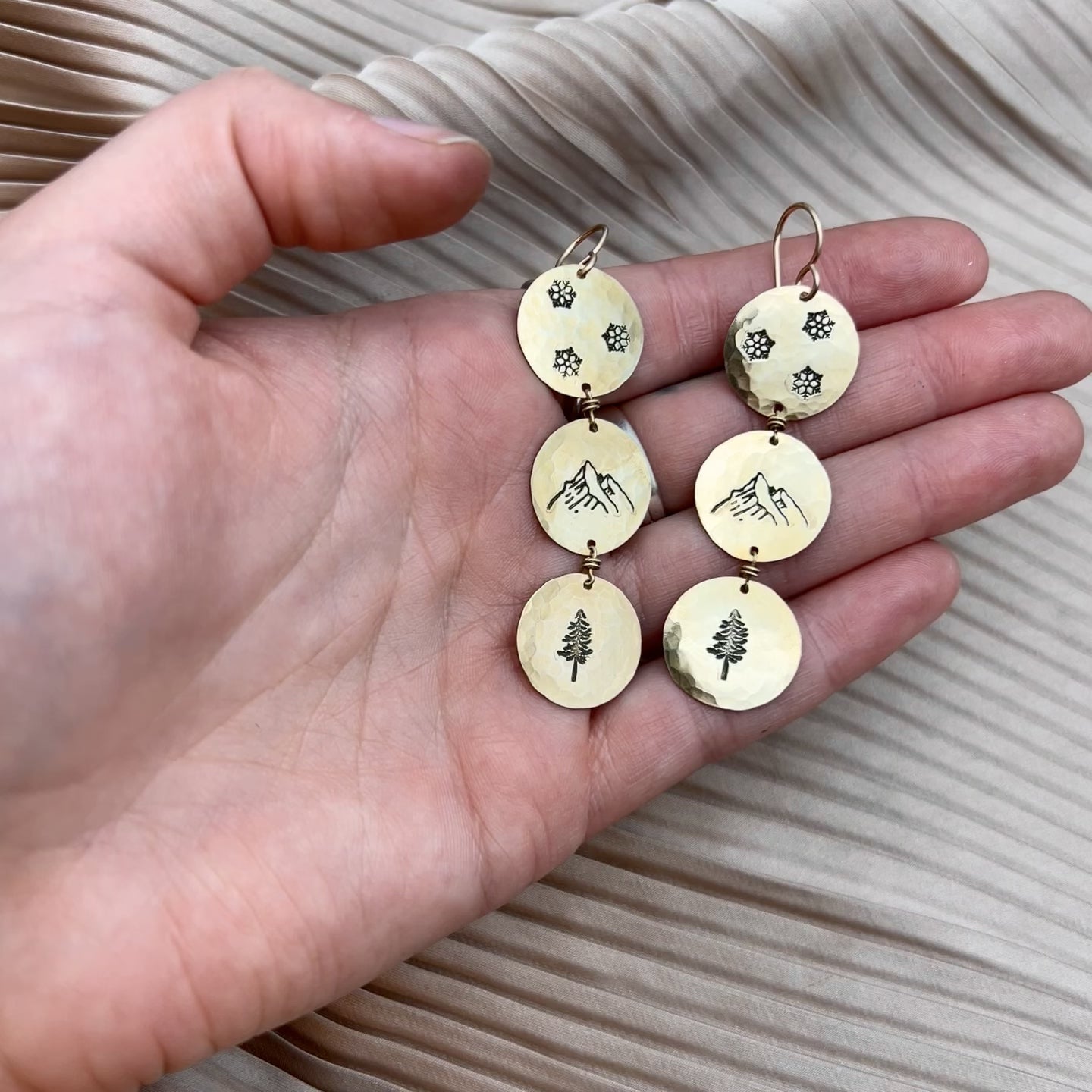 Ear wires and necklace chains are hypoallergenic and are sterling silver or 14 karat gold filled. Gold and silver pendant pieces are made of raw brass or sterling silver plated brass and can be polished the same as all other precious metals.