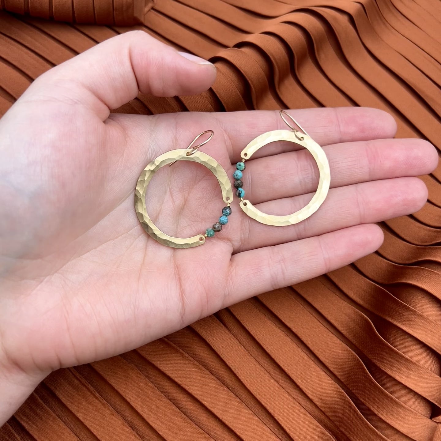 Ear wires and necklace chains are hypoallergenic and are sterling silver or 14 karat gold filled. Gold and silver pendant pieces are made of raw brass or sterling silver plated brass and can be polished the same as all other precious metals.
