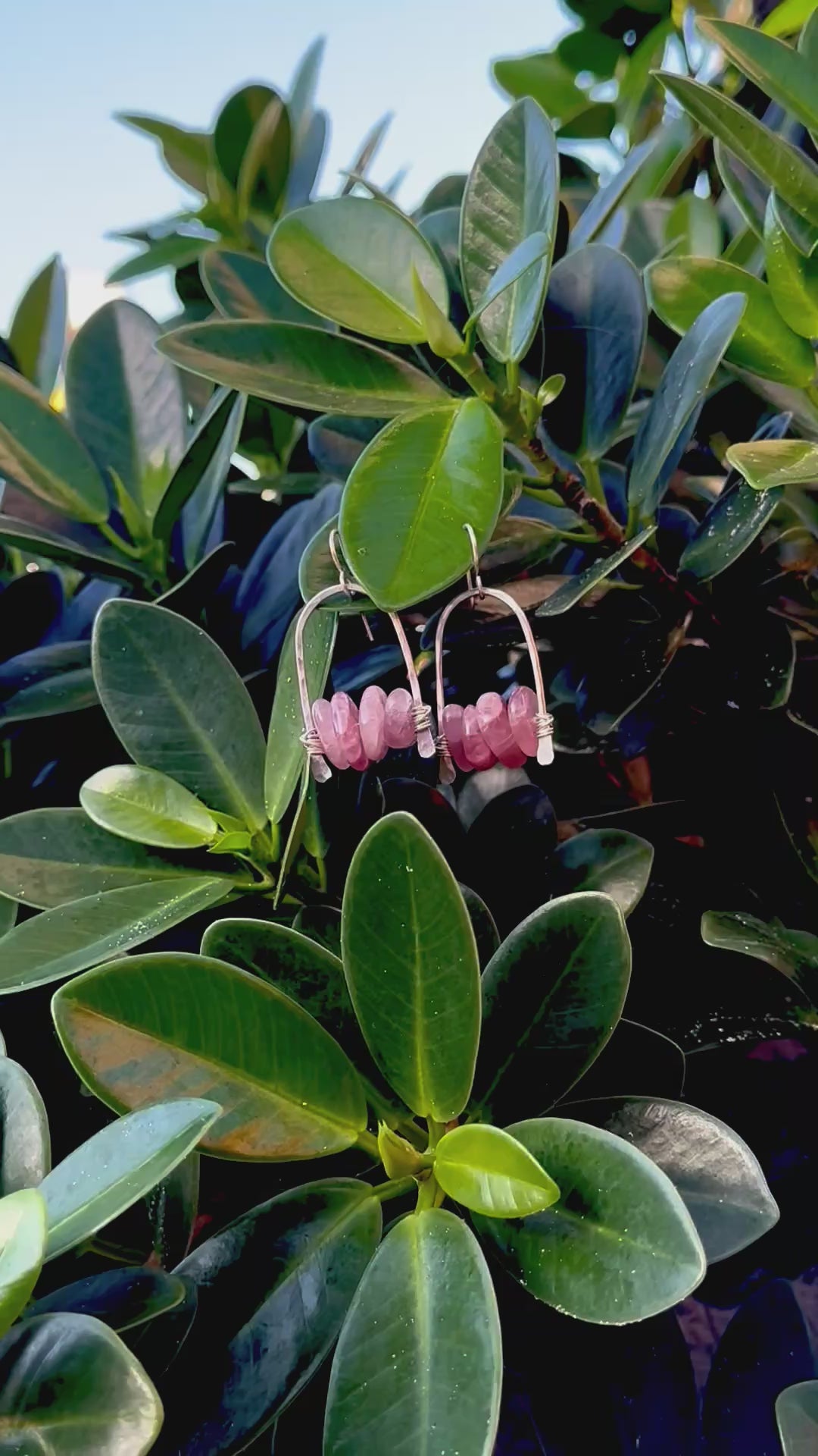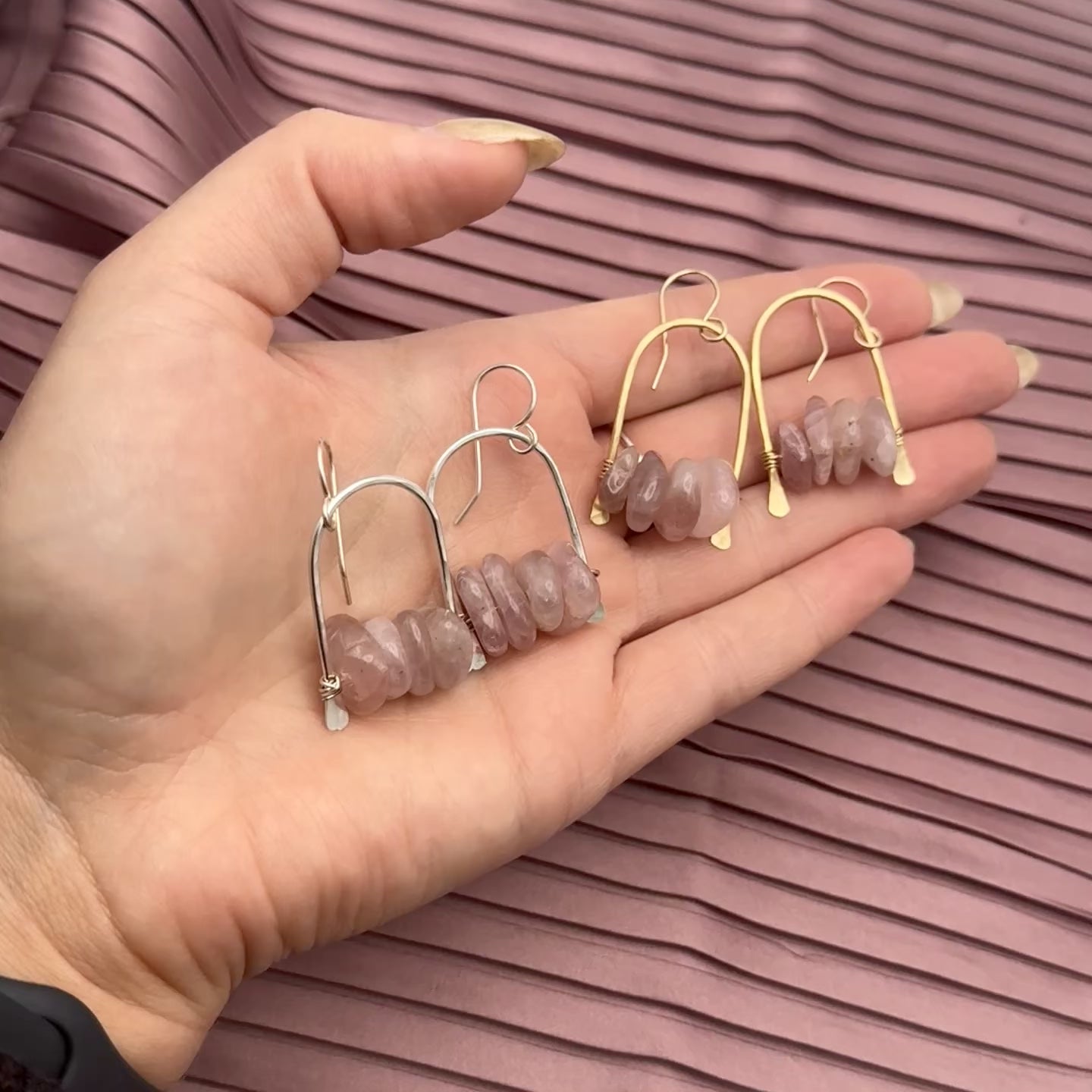 Rose Quartz stones with arched pendant that hang from 14 karat gold filled or sterling silver ear wire