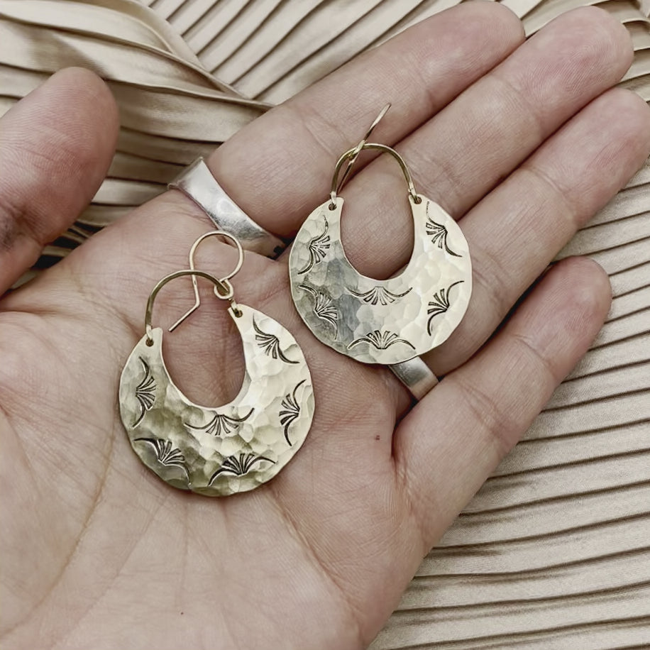 Textured brass or sterling silver plated brass pieces dangle from 14k gold filled or sterling silver ear wire.