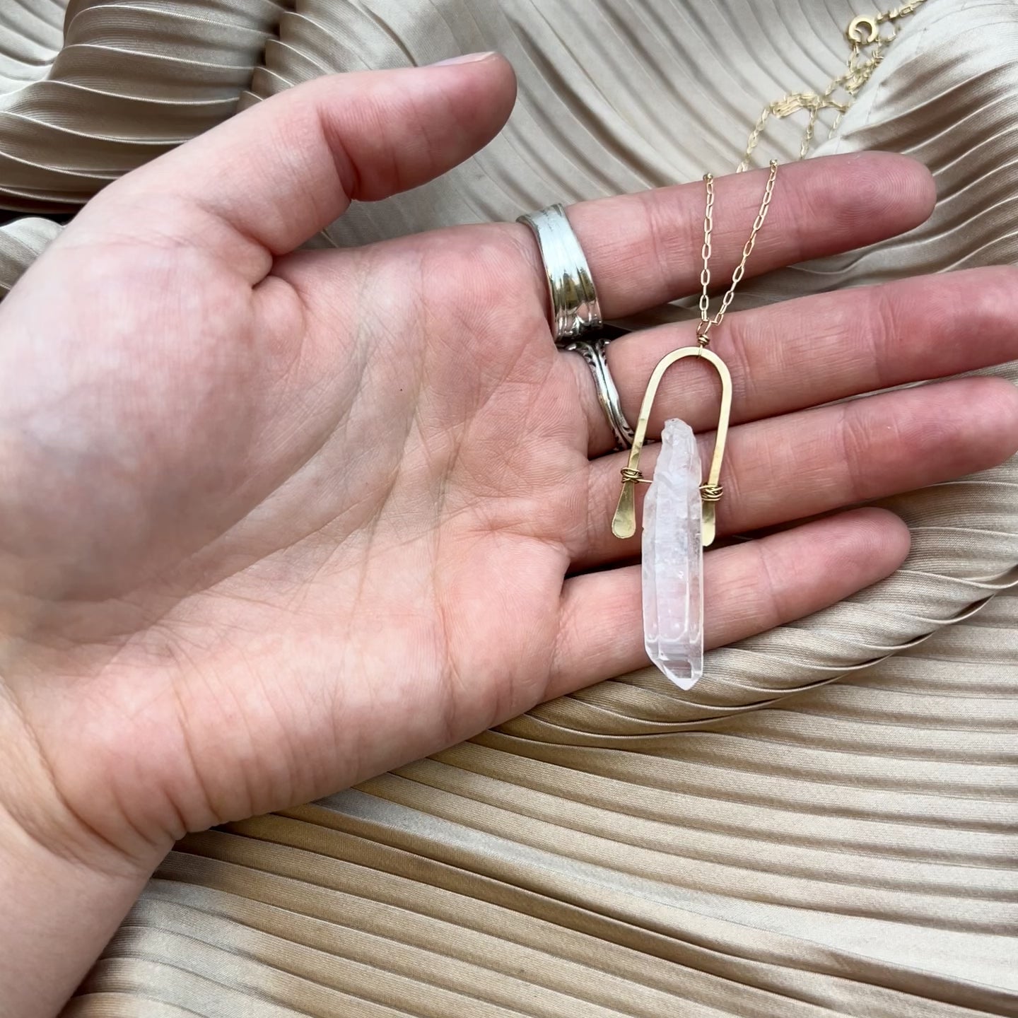 Small or large quartz point on a 14 karat gold filled or sterling silver chain.