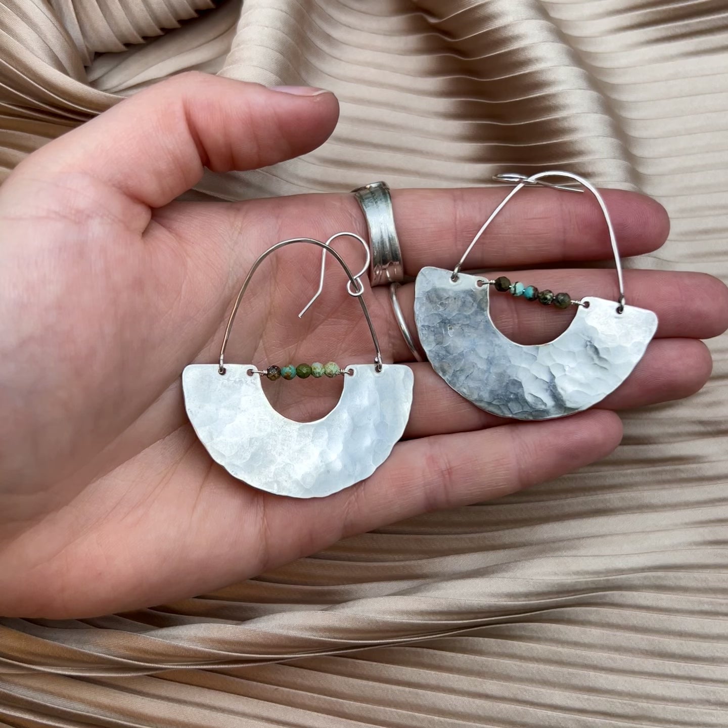 Ear wires and necklace chains are hypoallergenic and are sterling silver or 14 karat gold filled. Gold and silver pendant pieces are made of raw brass or sterling silver plated brass and can be polished the same as all other precious metals.