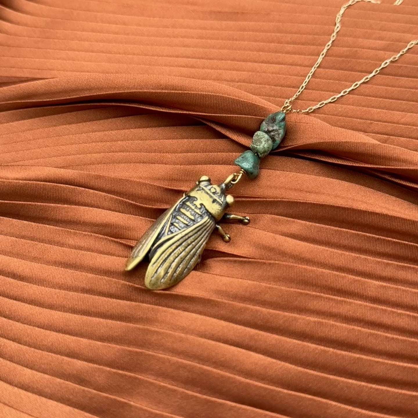 Please note that the cicada is only available in brass, though the necklace chain and findings may be ordered in 14k gold-filled or sterling silver.