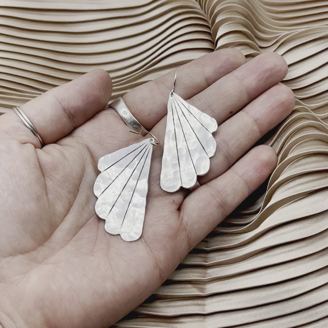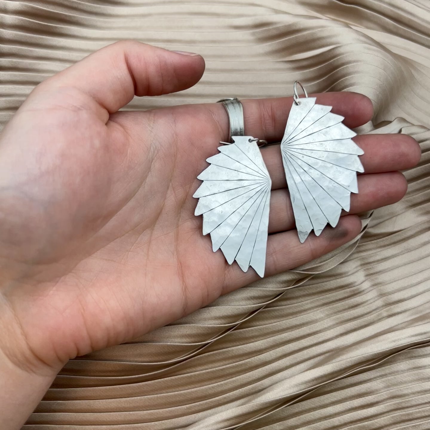 Gold or silver wing pendants that hang from 14 karat gold filled or sterling silver ear wire. Available with rounded or spiked edges.